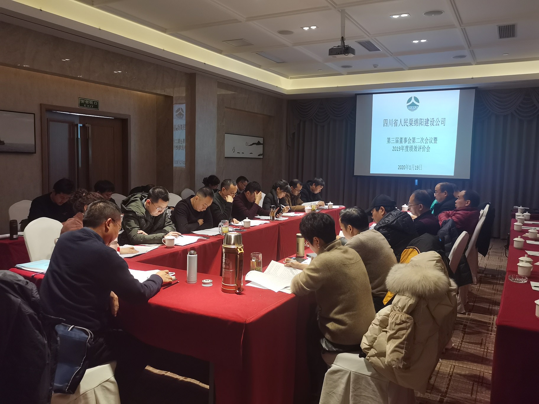 2020年1月19日四川省人民渠绵阳建设公司召开第三届董事会第二次会议暨2019年度绩效评价会议,参加会议的有出资人、全体董事会、监事会成员、公司经营班子及部分业务骨干。