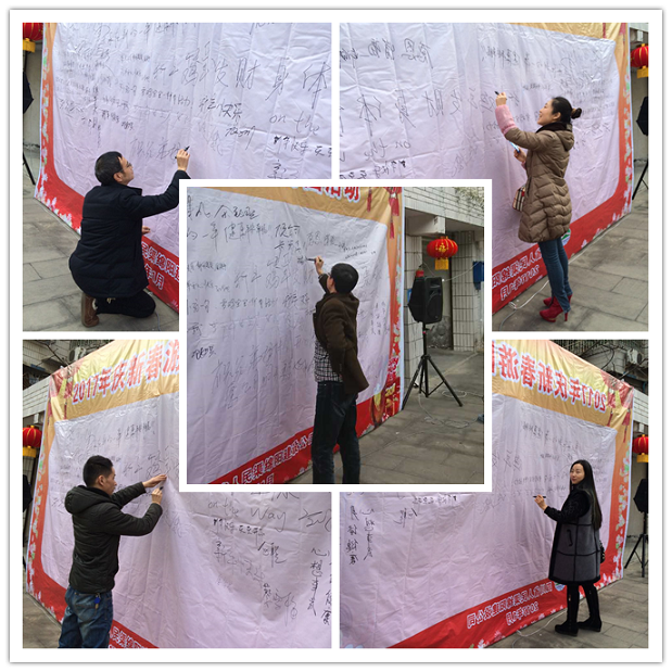 游园活动前,全体职工在幕布墙上写上自己的新年祝福和愿望,以此回首过往,展望未来,以此共勉,共同开启2017新局面。