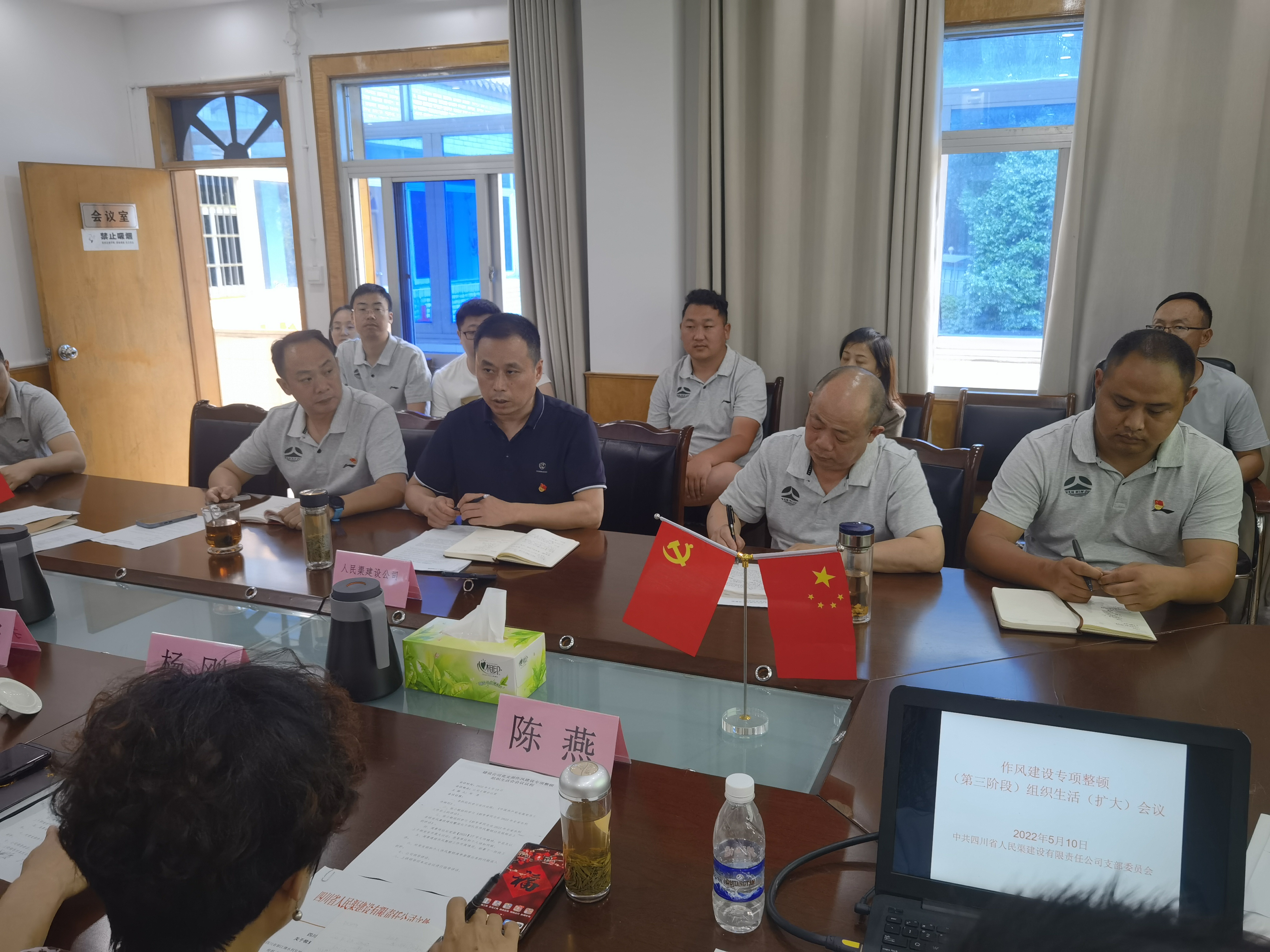 根据都发中心及人民渠二处作风建设专项整顿相关文件精神安排,510日下午,人民渠建设公司党支部召开作风整顿“见人见事见物”组织生活扩大会,公司全体职工参加会议。会议由周勇书记主持,都发中心人民渠二处杨刚副处长、综经科陈燕科长、财务科郭彬到会指导。