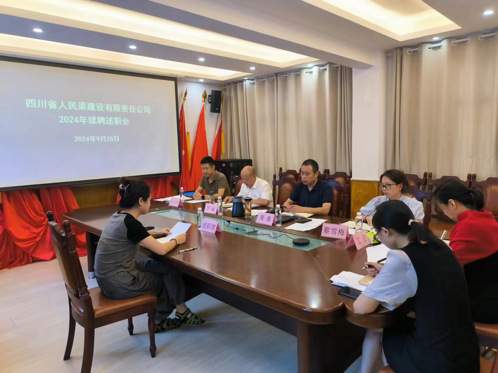 2024年9月25日,四川省人民渠建设有限责任公司在二楼会议室举行员工续聘述职会,述职对象为2022年招聘员工,公司经理层、部门负责人、工会代表听取述职。公司党支部书记、董事长、总经理周勇主持会议。
