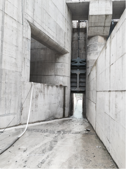 排污闸(宽2.5m) 泄洪闸已安装一孔检修闸门(宽5米,高5米) ![]()