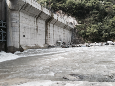 出居沟水电站位于雅安市宝兴县永富乡中岗村境内,电站首部距永富乡约12公里,电站首部枢纽布置在西河出居沟上游约2000米处,电站引水系统布置在西河左岸,于永富乡下游2600米西河左岸台地建厂发电,装机容量为2×3.7万KW 。 二、大坝施工进度及概貌: